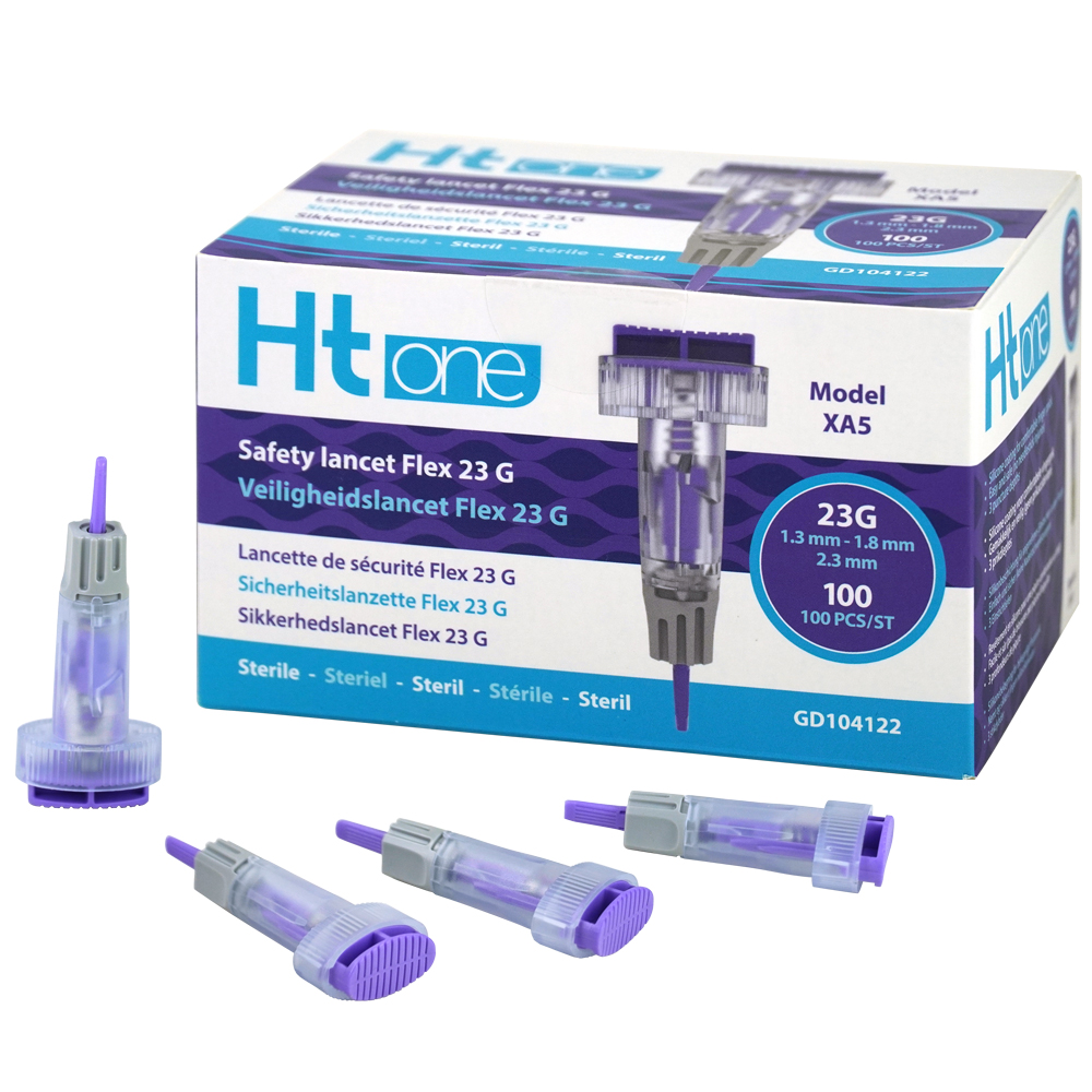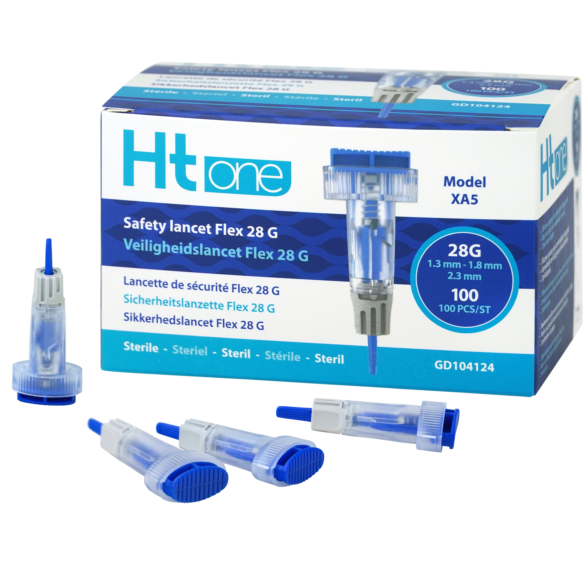 De Ht- One veiligheidslancet Flex vergroot de flexibiliteit en het comfort met drie instelbare prikdieptes. Daarbij bent u optimaal beschermd tegen prikaccidenten.