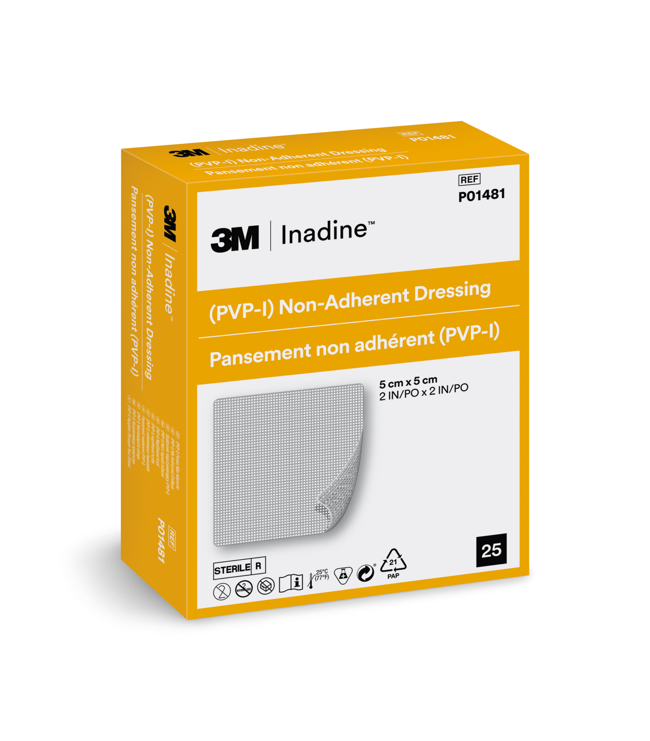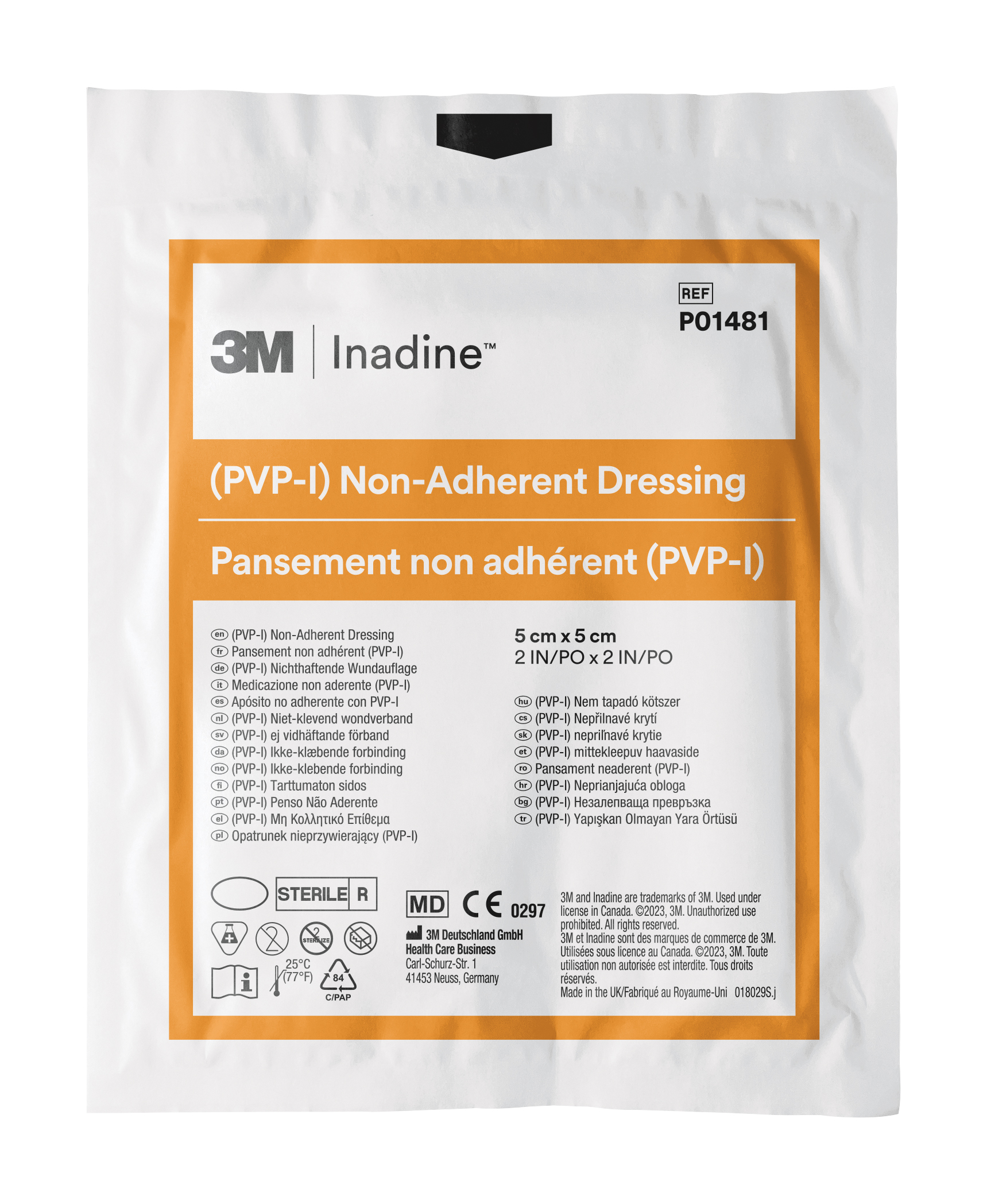 3M™ Inadine™ PVP-I niet-verklevend gaas (voorheen Systagenix) bestaat uit een nauwelijks verklevend materiaal van gebreide viscose. Deze is geïmpregneerd met een polyethyleenglycolbasis (PEG) die 10% povidonjodium bevat, wat overeenkomt met 1,0% jodium.