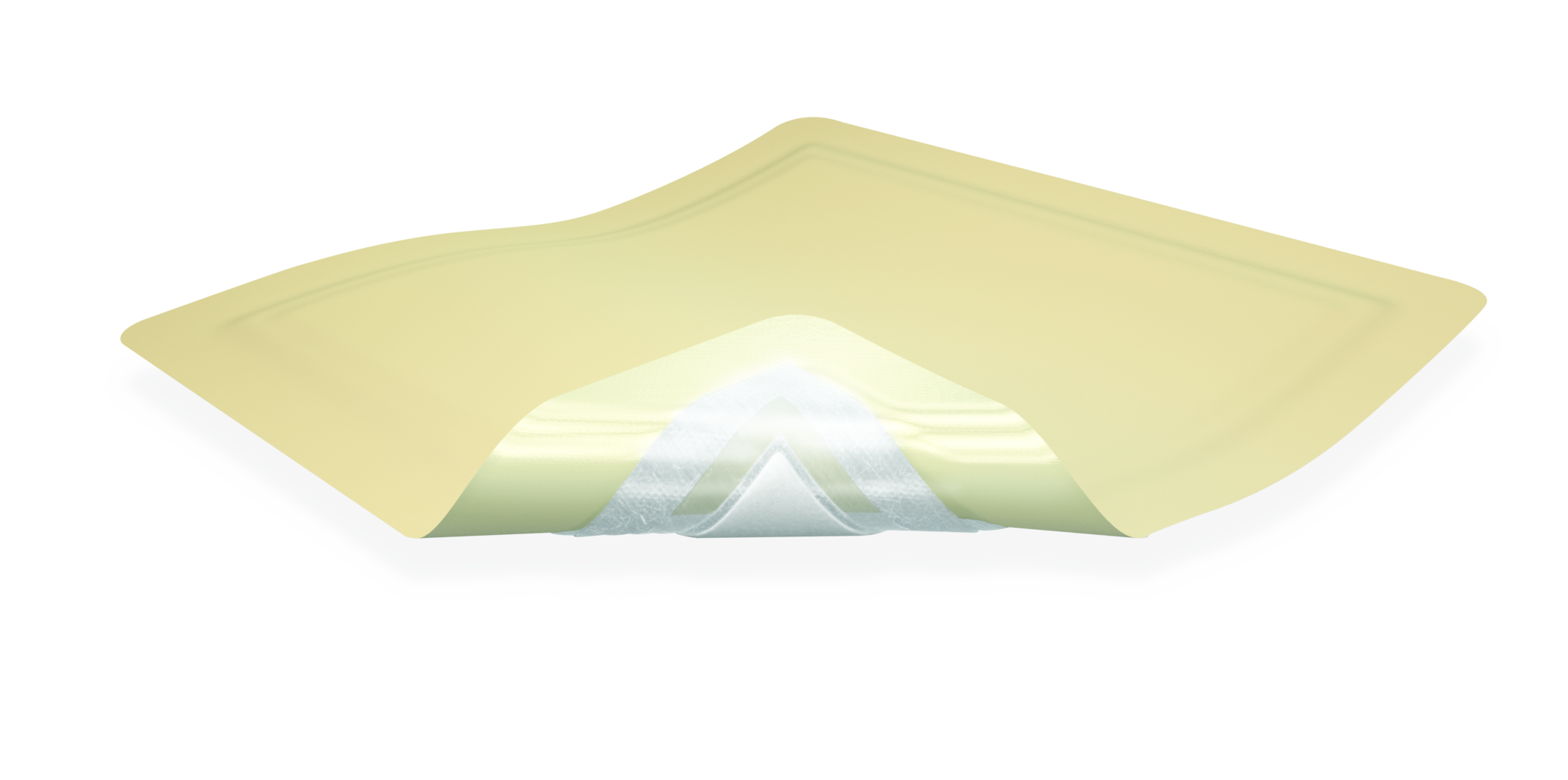 - Houdt exsudaat vast ter bescherming van het tere weefsel in de wond en de gezonde omliggende huid.