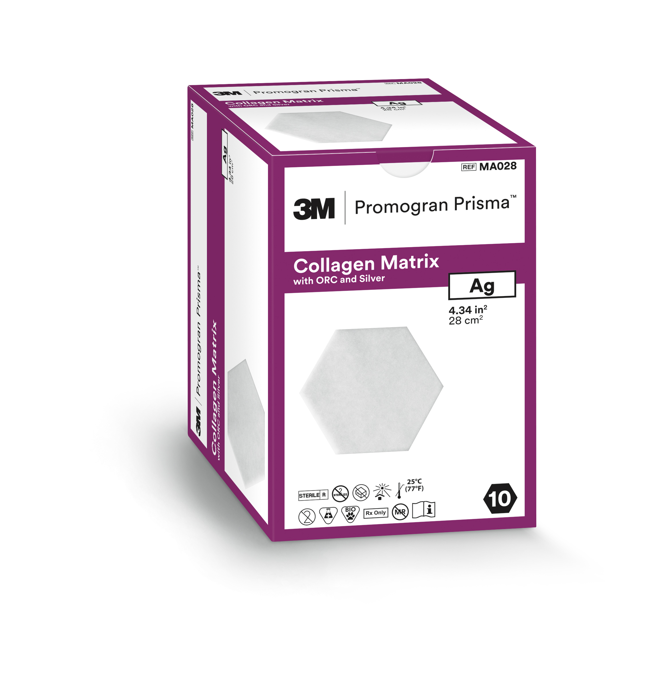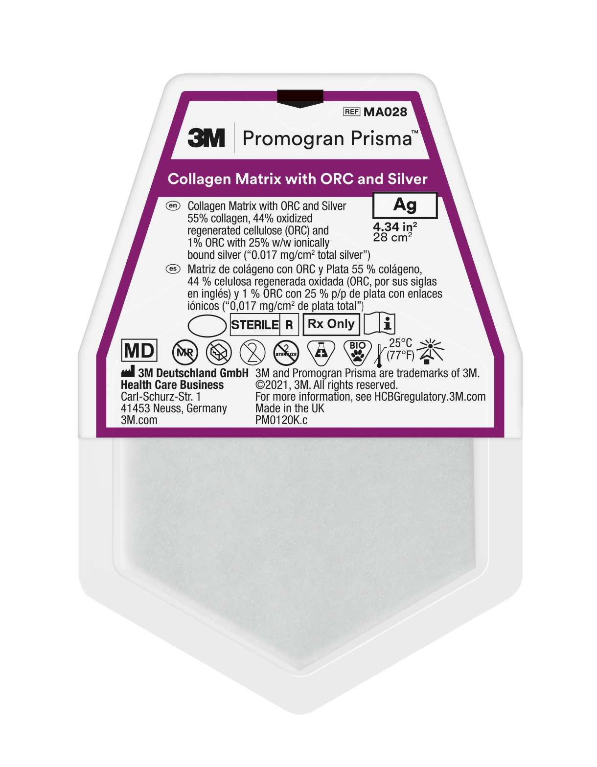 3M™ Promogran Prisma™ wondbalancerende matrix (voorheen Systagenix) bestaat uit een combinatie van 44% geoxideerde geregenereerde cellulose (ORC), 55% collageen en 1% zilver-ORC en creëert een balans in de wond, waardoor deze in staat is te genezen. Het zilver helpt infectie te bestrijden of voorkomen.