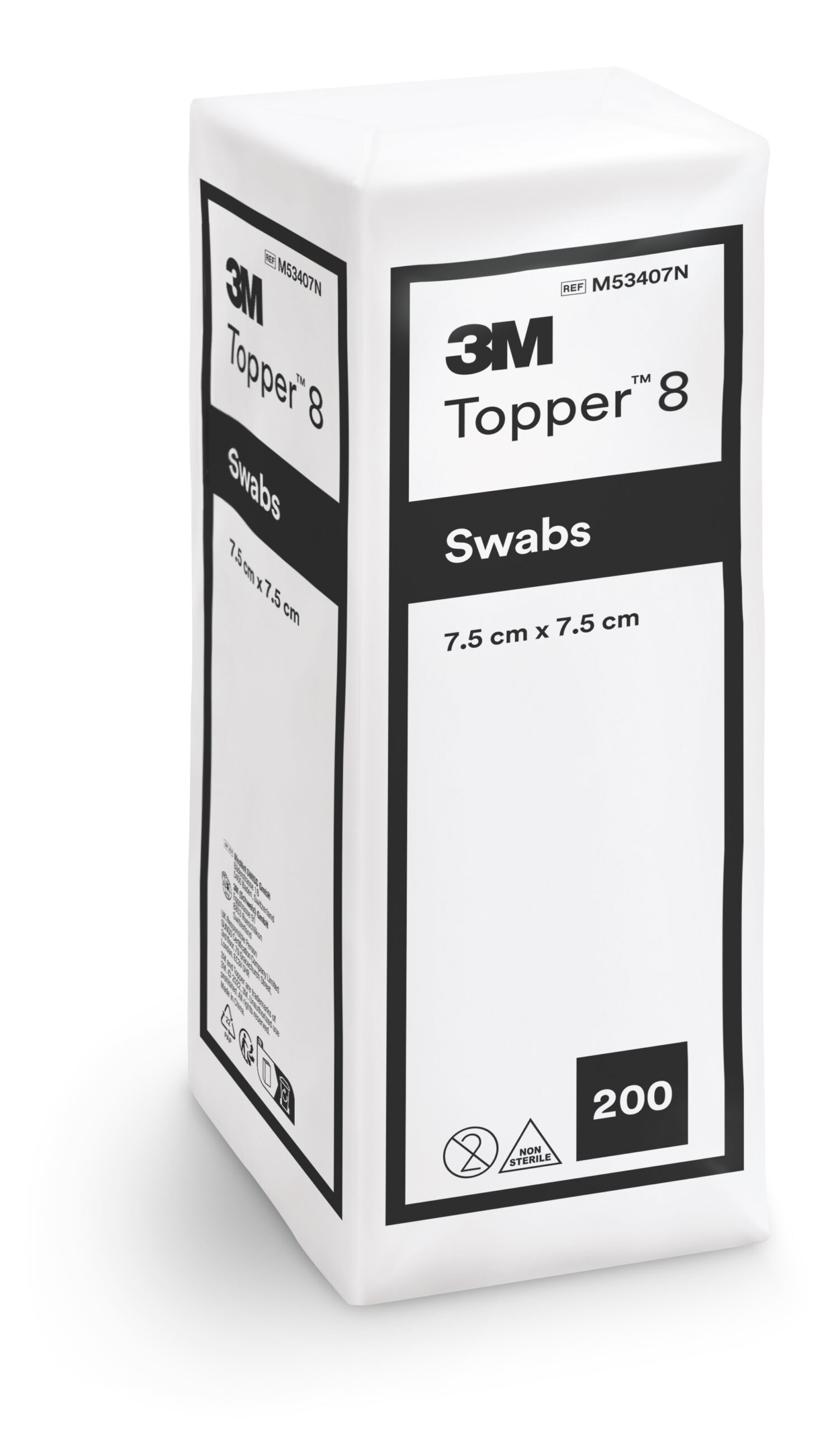 De TOPPER™ gazen bestaan uit non-woven viscose kunstzijde en polyester. Het viscose/ polyester materiaal is zacht en sterk met minimale kans op een allergische reactie.